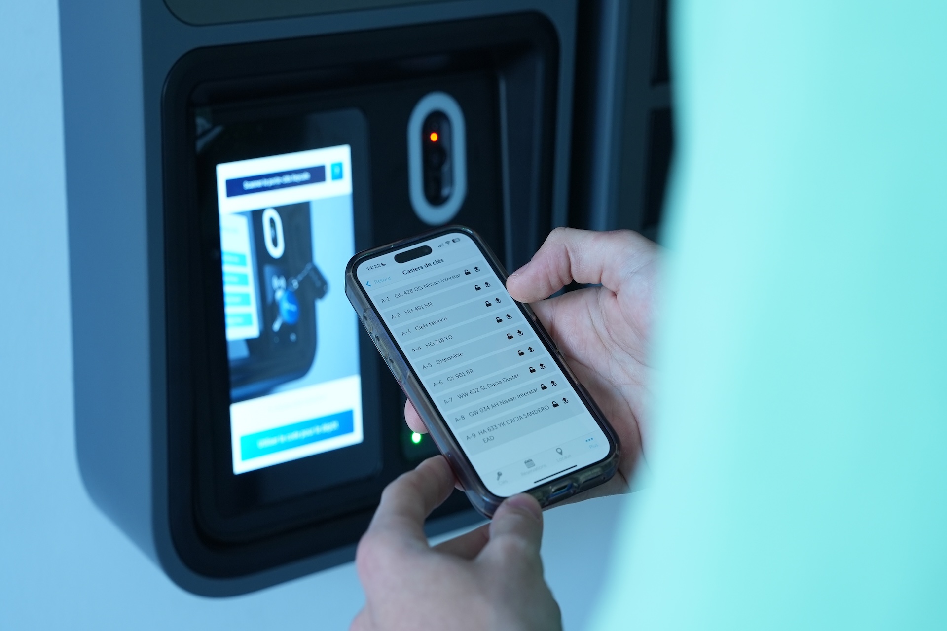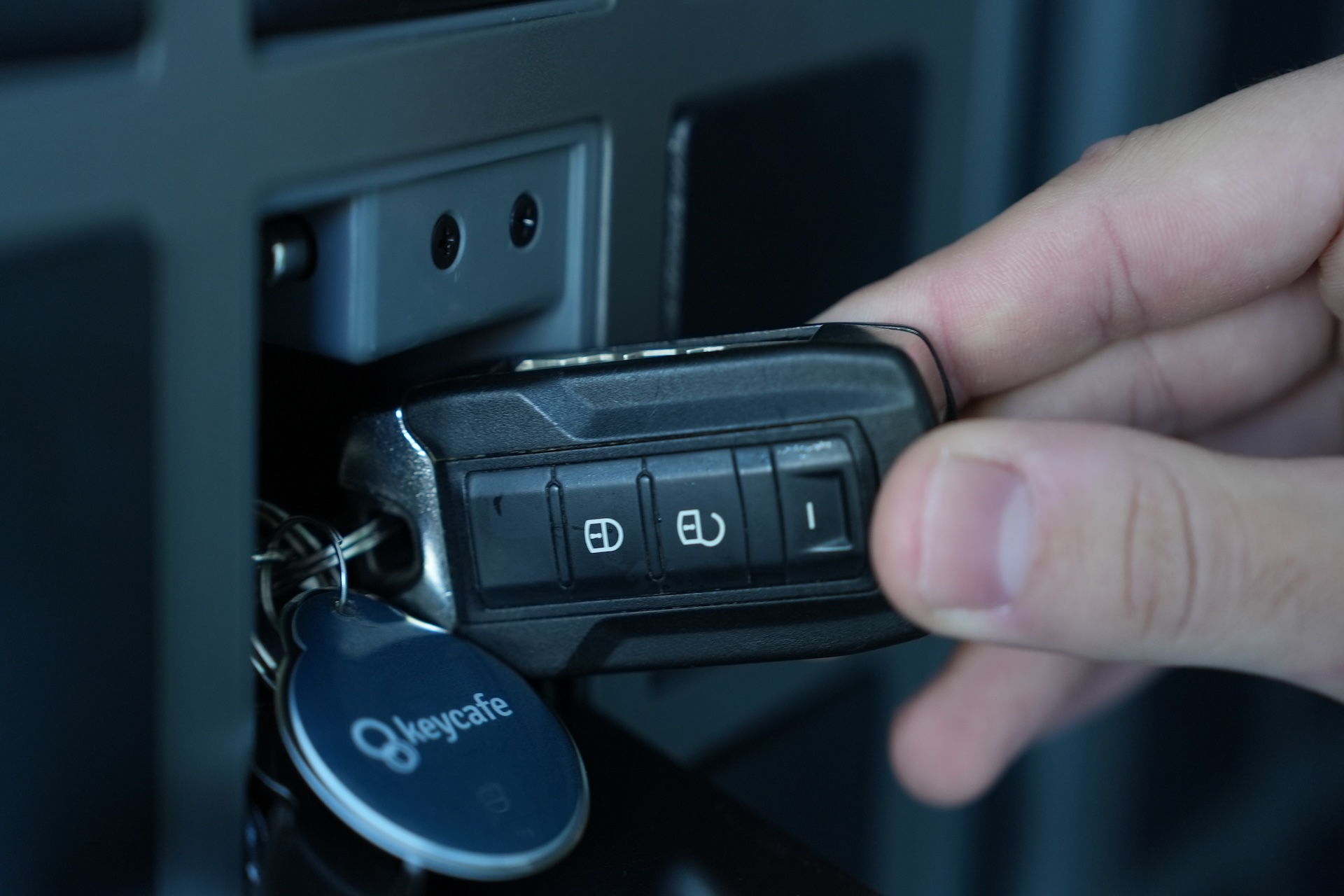 Customers can then independently collect their vehicle by entering the code at the SmartBox, which opens the locker containing their key. Each vehicle key is stored with a Keycafe fob that identifies the key, enabling secure tracking throughout the rental lifecycle.